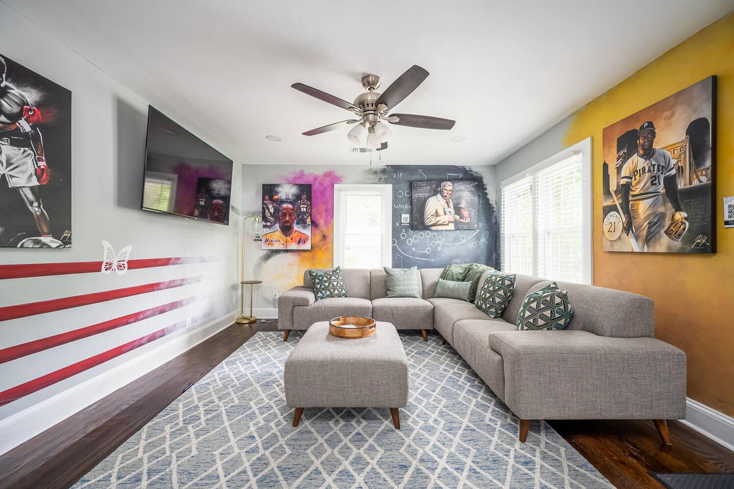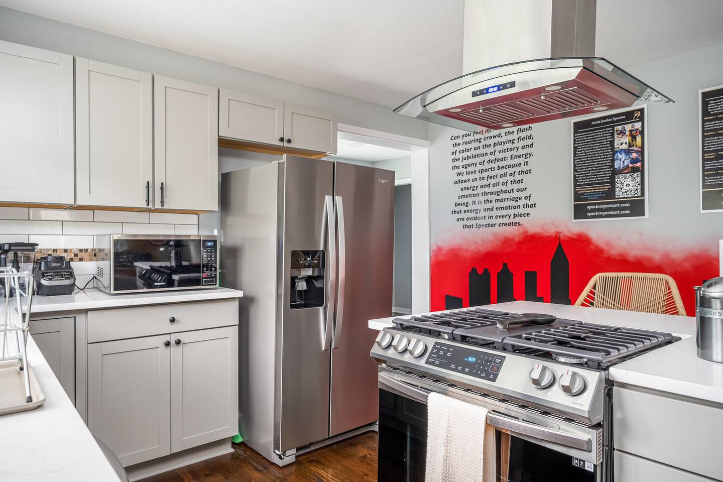 Have you ever spent the night in an art gallery? How about an Airbnb designed by a world renown artist? The Arena Sports Art Gallery is located 1 mile from Marietta Square and features over 30 pieces created by "Spector Sports Art". Each month new exclusive works are added, making each stay unique! This Home is just 15 minutes from ATL Battery, where the 2021 World Series Champs Atlanta Braves play, and is fully loaded with modern amenities.