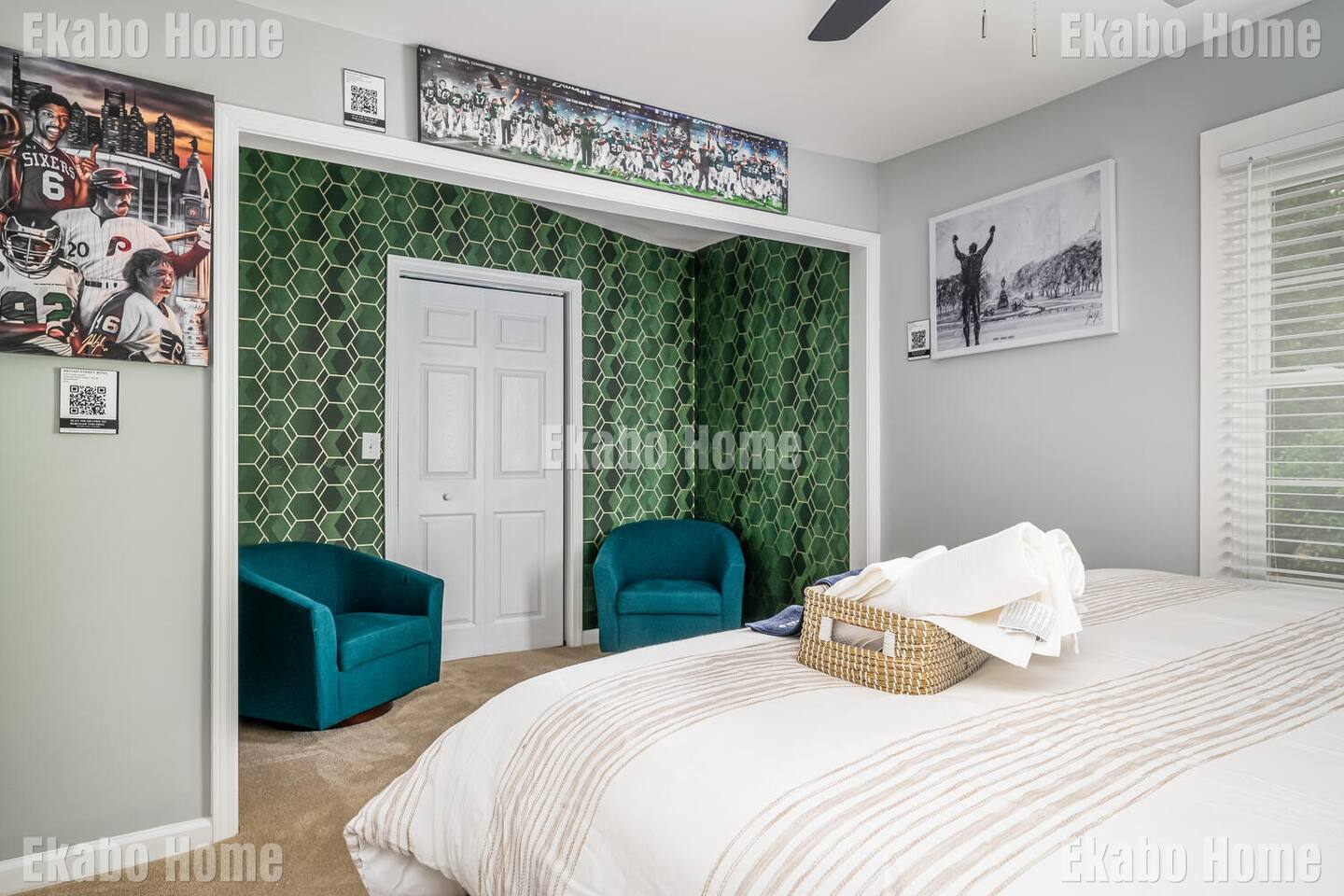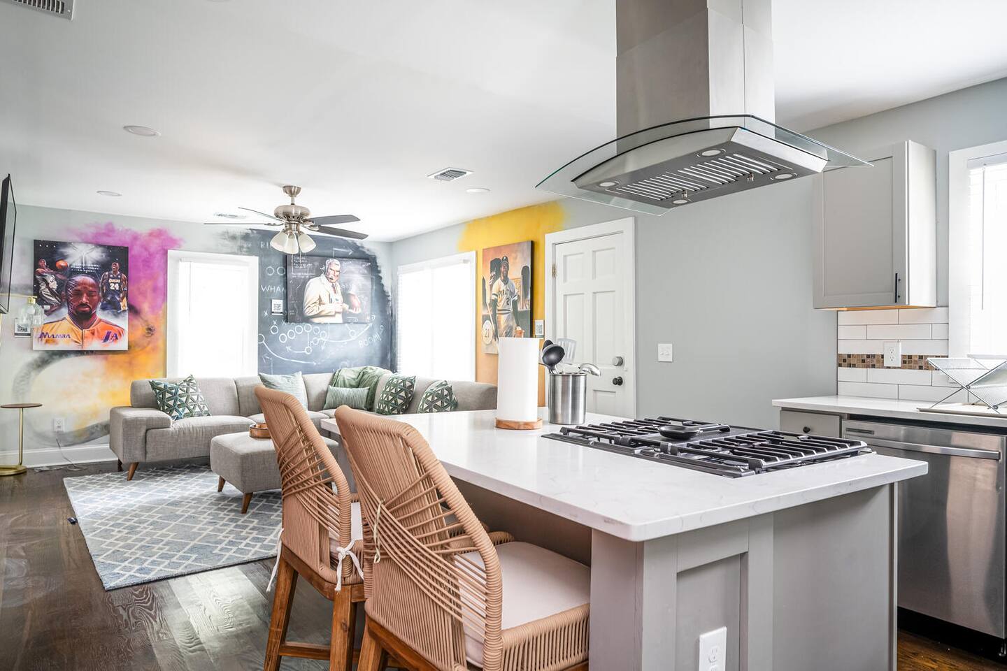 As a guest you will have access to the full home during your stay and you are encouraged to take advantage of the dedicated office space. Quartz Countertops, Chromecast enabled Smart TV, Keurig Coffee Maker, and high speed wifi throughout. You will have the opportunity to spend time with the different pieces of art and have the ones that you truly love delivered to your home post stay.